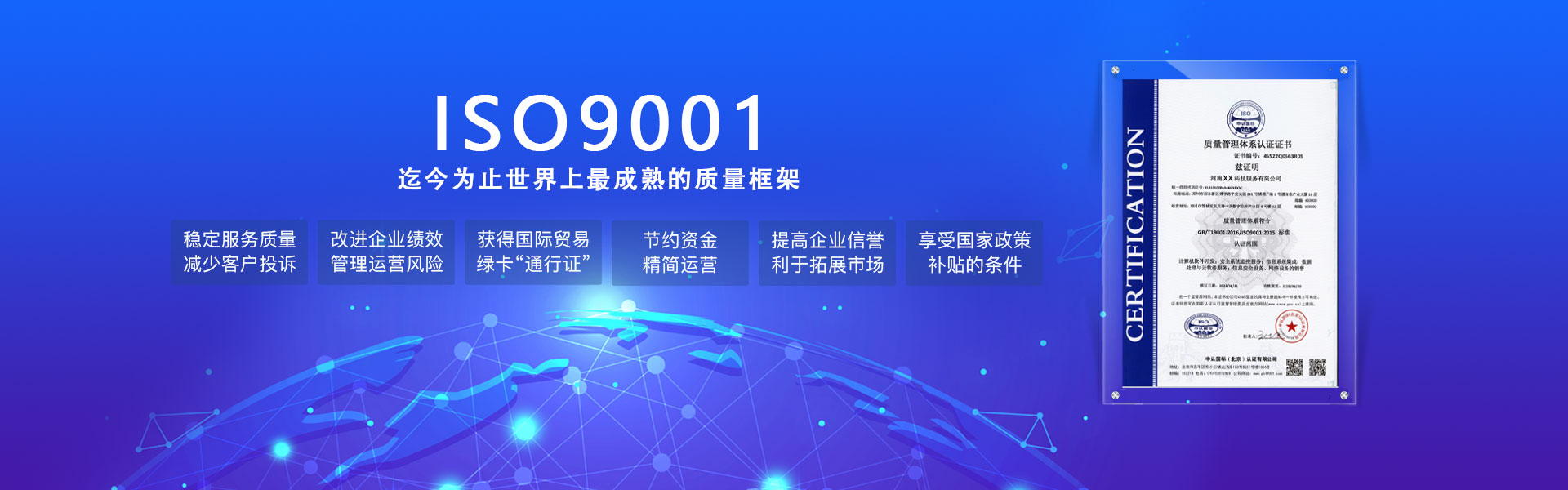 通俗的來講,ISO9001質量管理體系的目的在于強化品質管理,增進顧客滿意,提高企業效益。通過ISO9001認證,已成為組織進入市場和贏得顧客信任的基本條件。